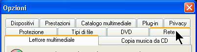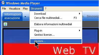 a) Aprire windows media player e dalla barra degli strumenti selezionare opzioni